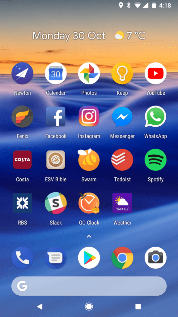 As you can see apps like Newton (email), Todoist, RBS (banking) etc. are all available on Android which makes the migration far easier than I expected.